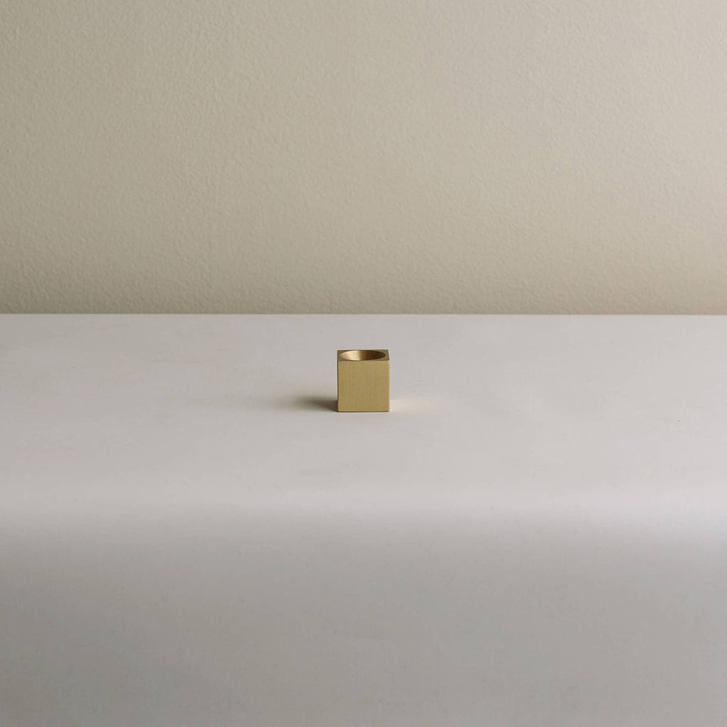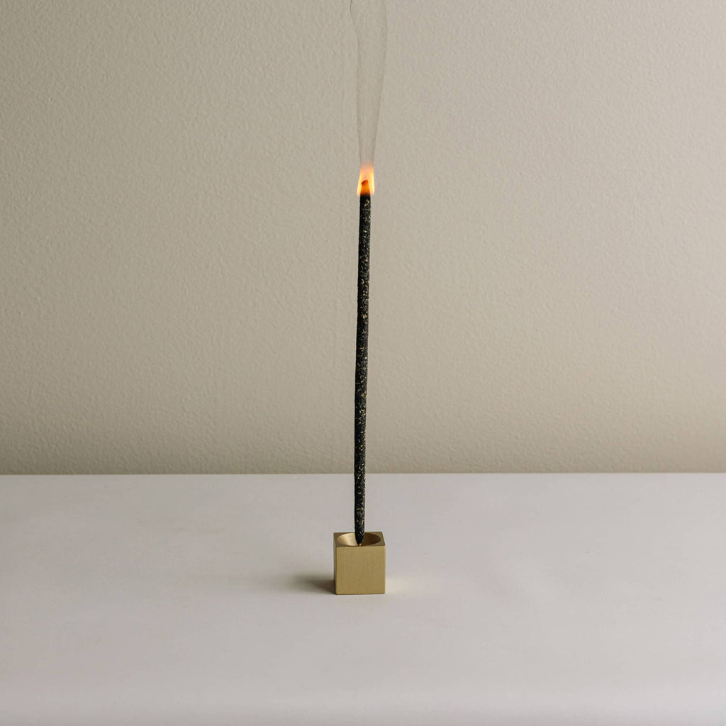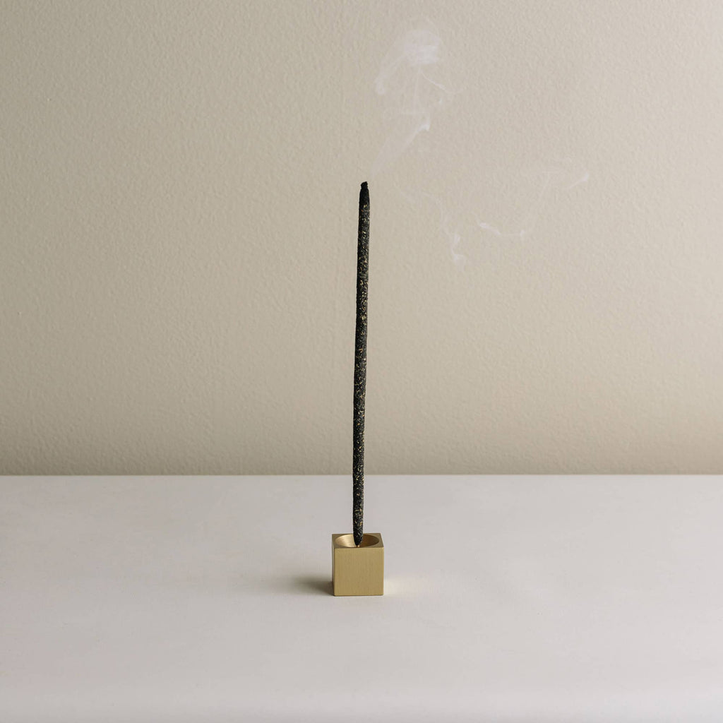 Cubic matt brass incense holder, 25mm on each side, fits incense with a diameter of 2mm. Adds a modern yet classic touch to any interior.