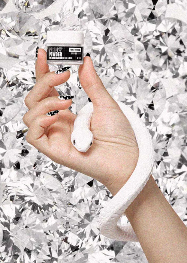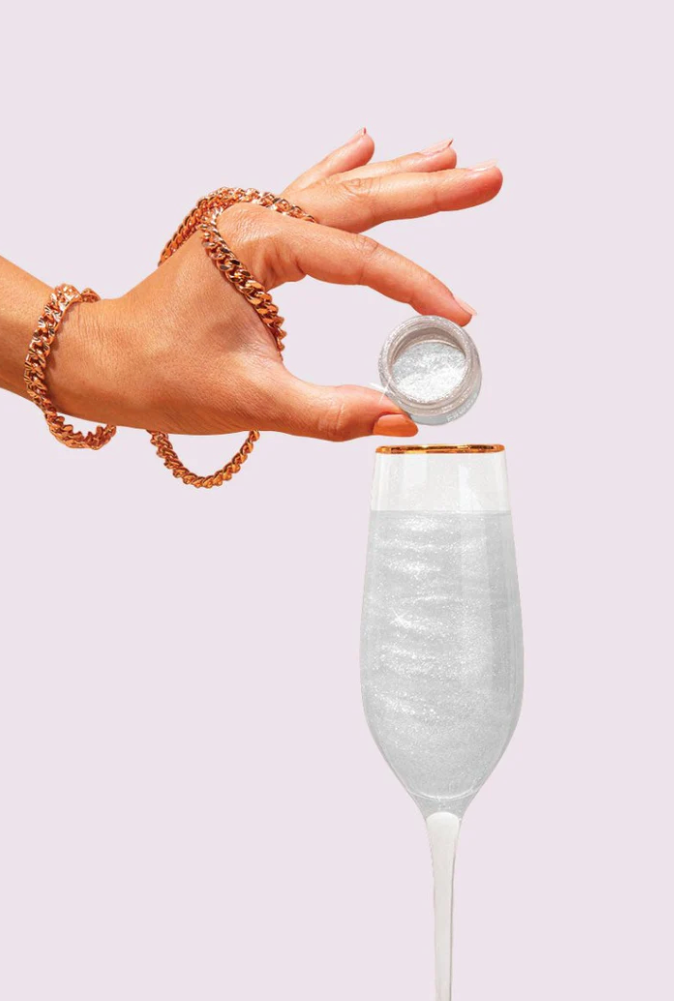 Diamond White is a fine edible glitter powder that shines like a diamond in liquid.