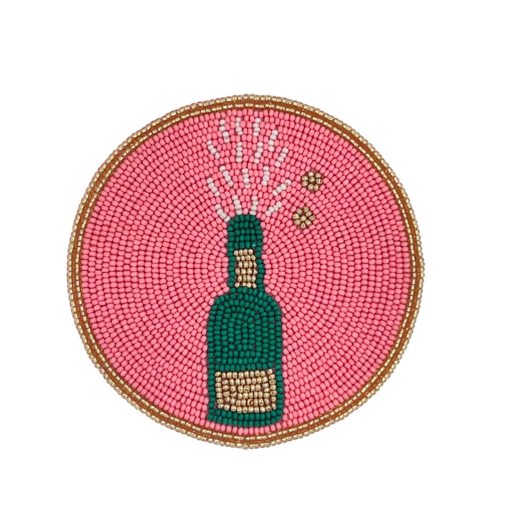 Pop the Champagne Bottle Beaded Coaster: Orange