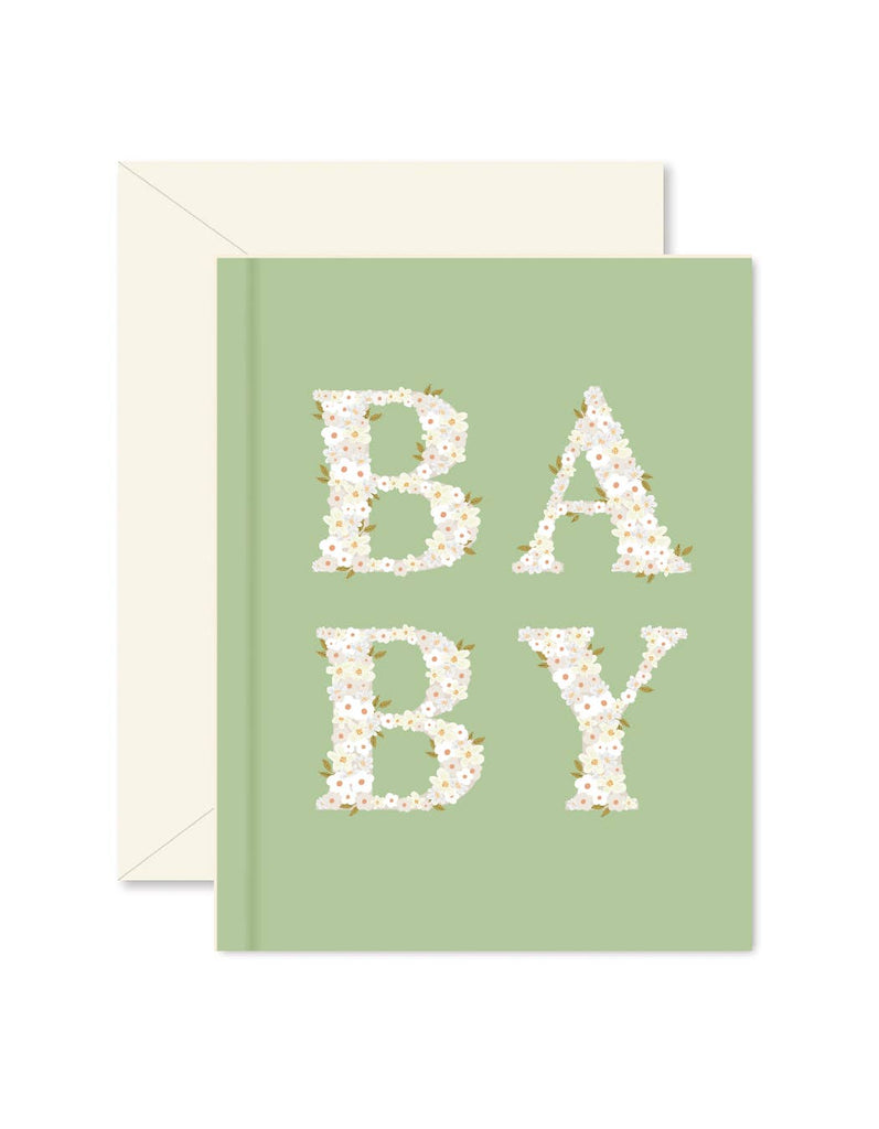 The sweetest gender neutral baby card featuring floral lettering. Full - color 4.25" x 5.5" folded card. Blank interior.